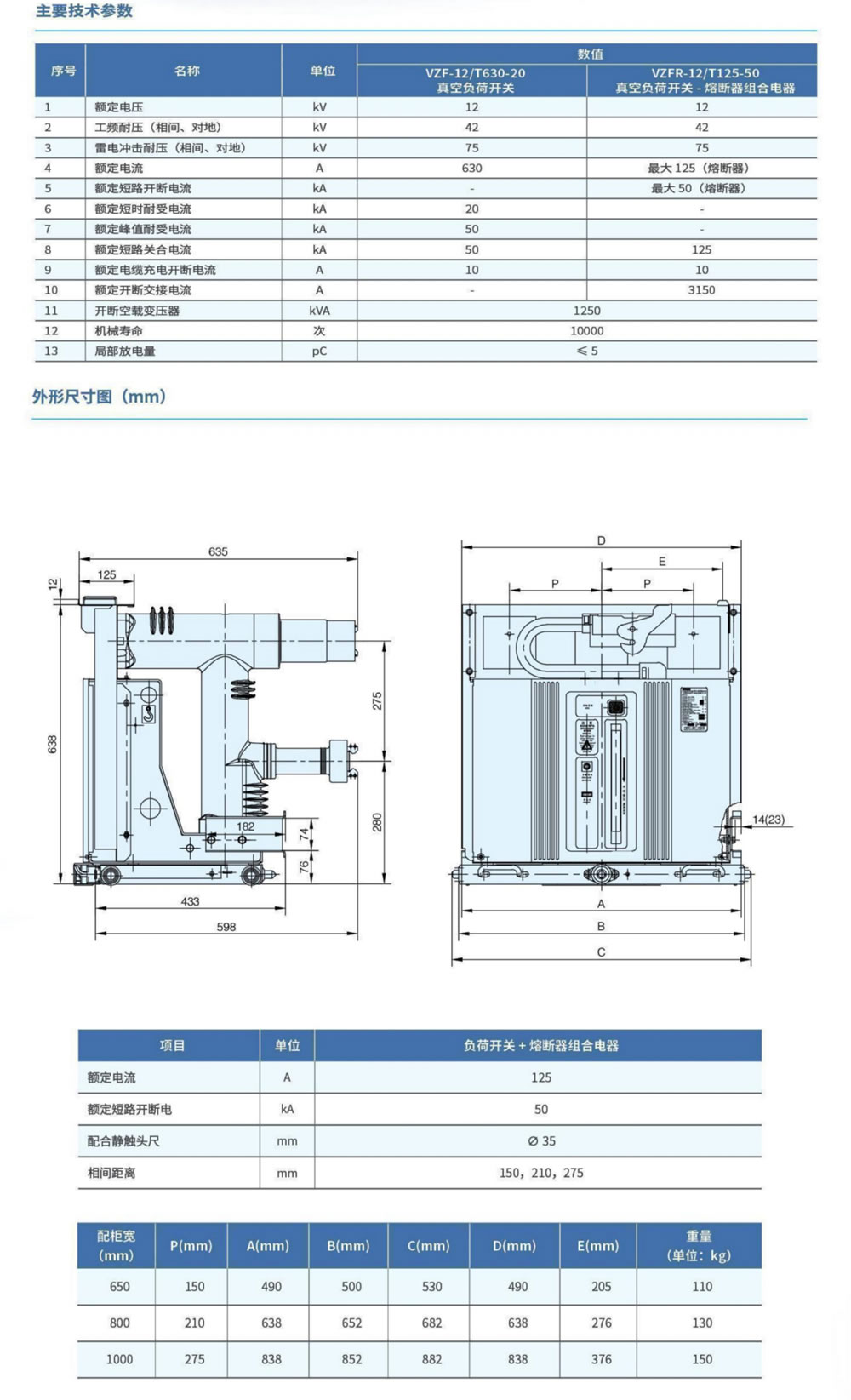 VZFR-12/T630-20/T125-50手車式真空負(fù)荷開關(guān)+熔斷器組合電器