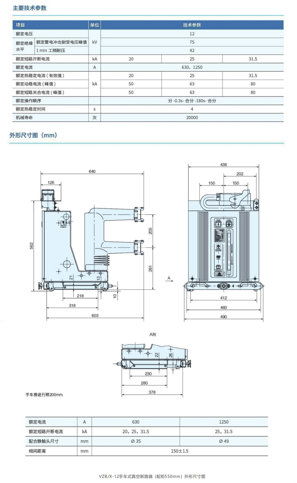 VZB/X-12手車式真空斷路器(配柜550mm)